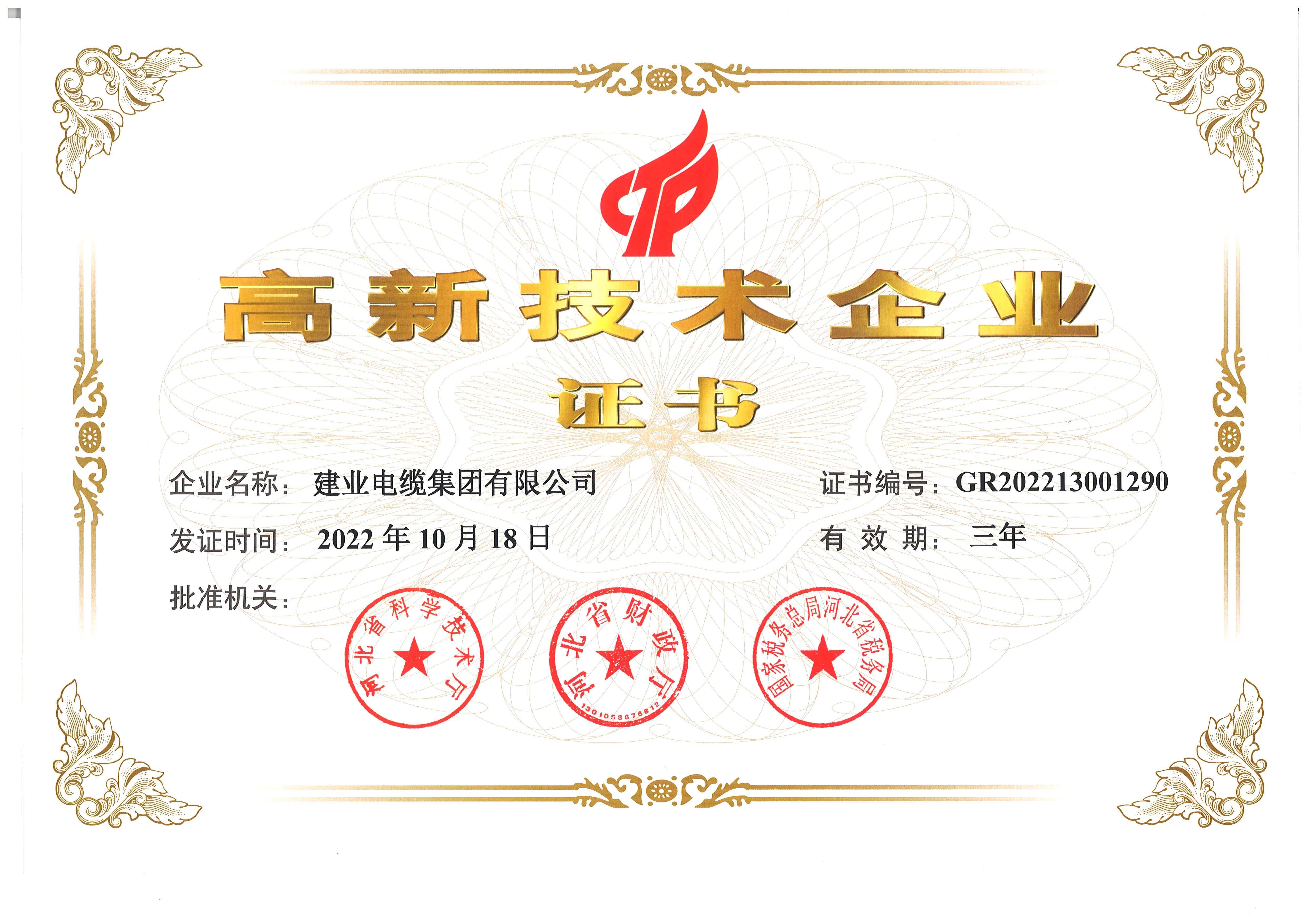 高新技术企业证书